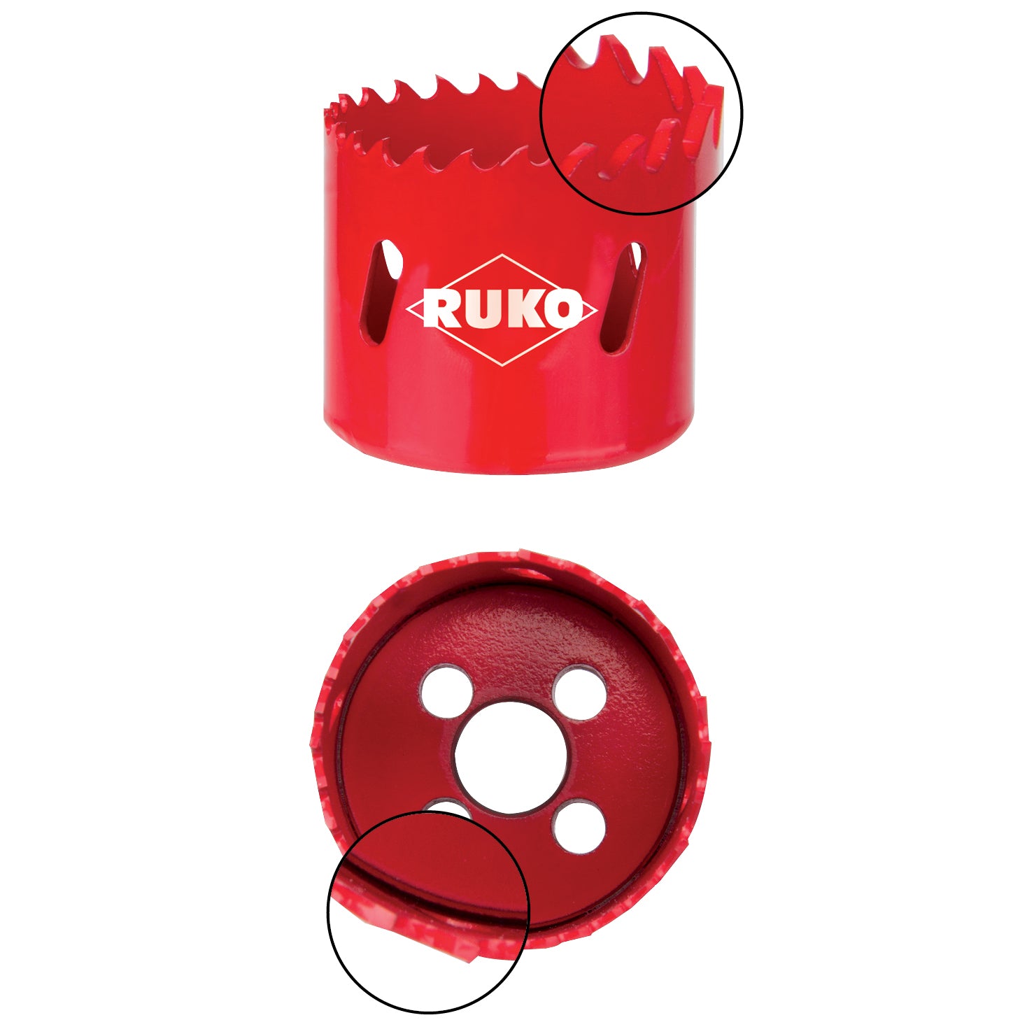 RUKO offers High Speed Steel Red Hole Saws ranging from 14mm-210mm in Diameter.