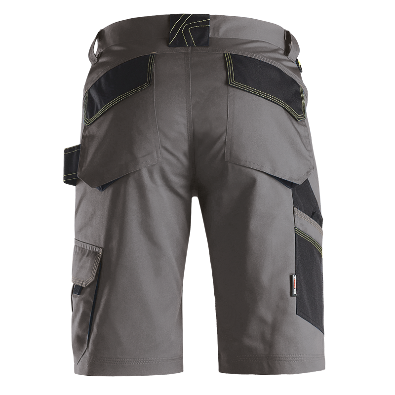 - Large double front pockets with bellows, cargo pockets with bellows, tool/phone pocket, and hammer holder to maintain practicality even in a pair of shorts.